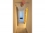 Une salle de bain avec cabine de douche et double vasque. Un WC séparé se trouve au niveau de l'entrée de l'appartement.