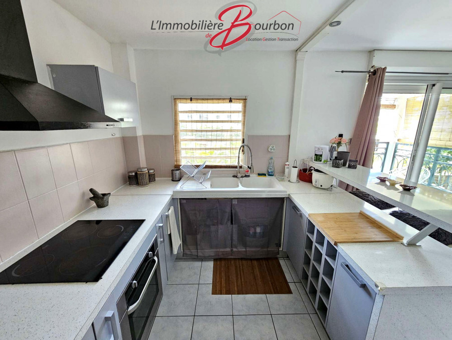 L'Immobilière de Bourbon vous propose cet appartement T3 entièrement meublé et équipé composé d'un salon, d'une salle à manger donnant sur la varangue et la grande cuisine ouverte équipée d'une plaque de cuisson, hotte aspirante, four, micro-ondes et machine à laver ainsi que tout le nécessaire pour cuisiner.