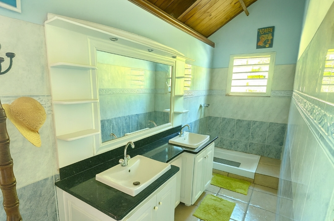 Piscine monocoque Sunset au sel, chauffe-eau solaire, portail et porte de garage automatisés, toiture travaillée et finitions créoles? autant d'éléments qui confèrent à cette villa son caractère unique.