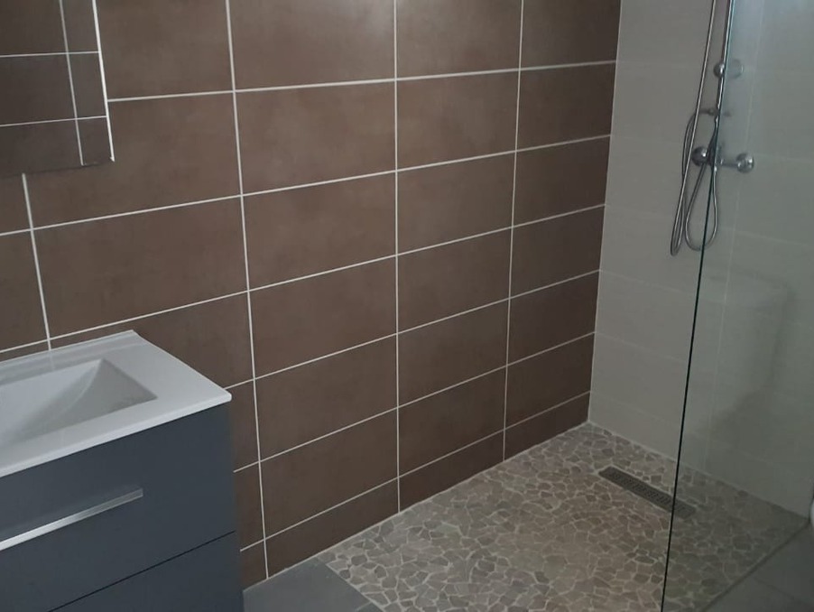 Deux chambres avec placard, une salle de douche et 1 wc séparé.