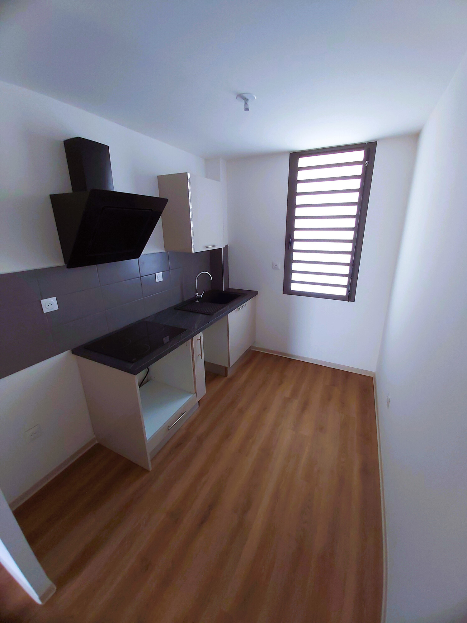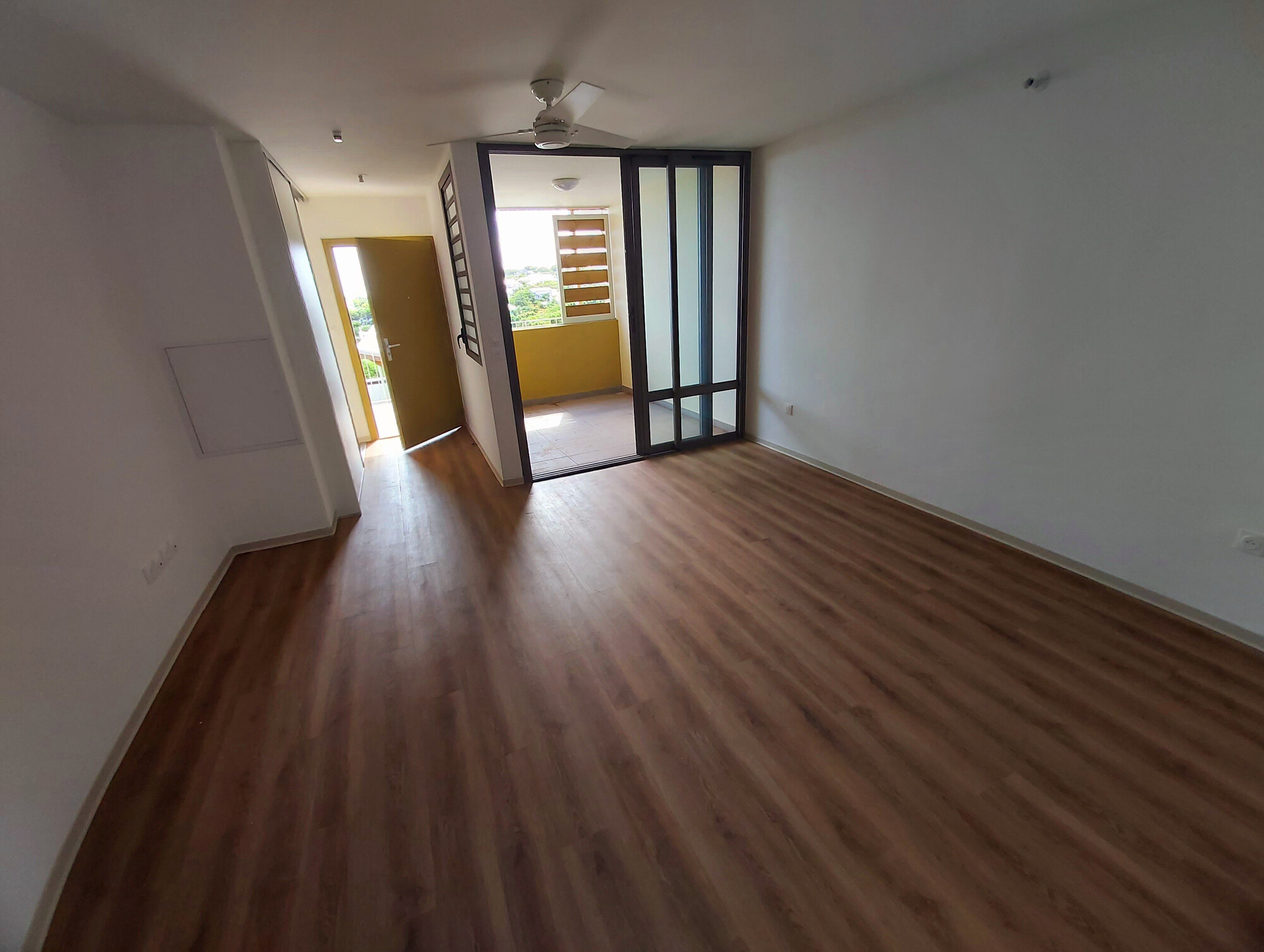 Un appartement type T2 disponible de suite, comprenant un séjour, une chambre climatisée, une cuisine équipée de plaque de cuisson vitrocéramique 3 feux, hotte aspirante et placards, une salle d'eau avec WC, d'une surface habitable de 47.77 m² et d'une varangue a minima de 6.67 m² (cet appartement dispose d'une varangue de 14.94m²).