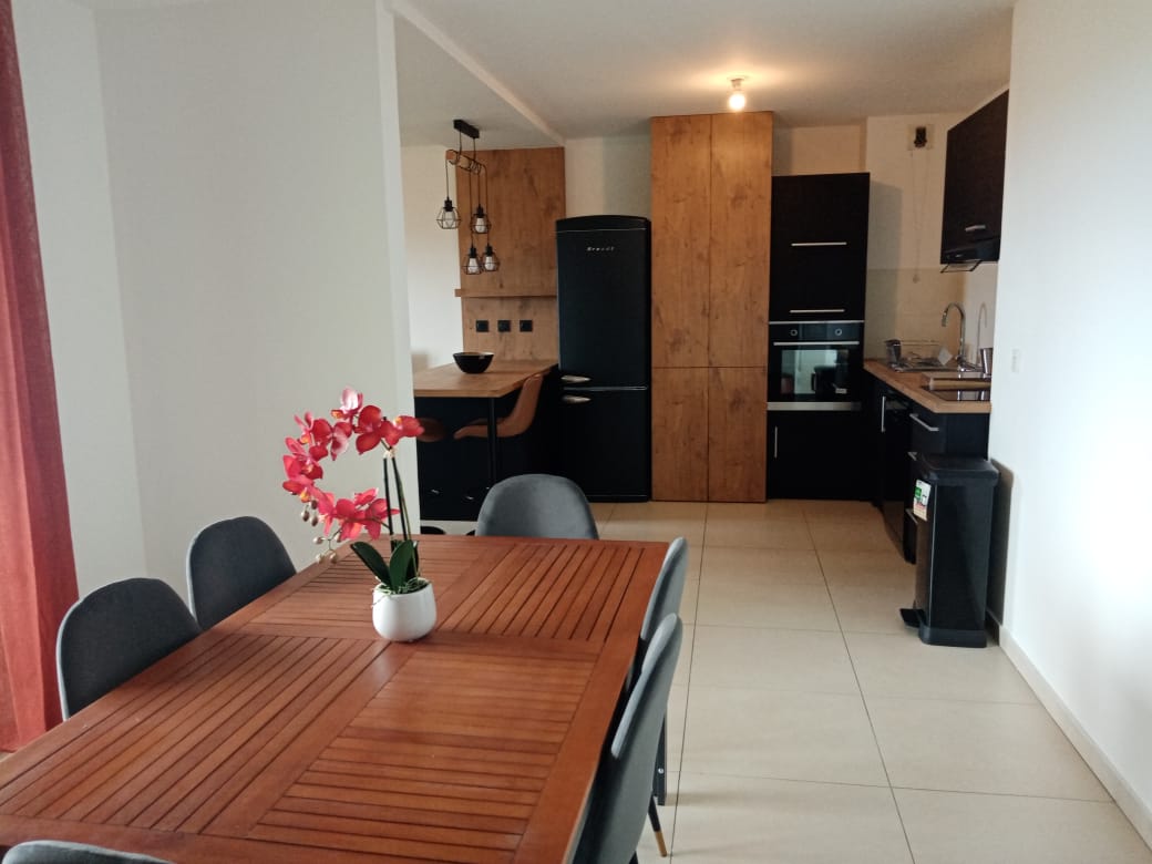 L'Immobilière de Bourbon vous propose à la location ce grand T2 entièrement équipée et meublée, ( Rez-de-chaussée du côté de l'entrée de l'immeuble mais au R+1 coté vue mer) dans une résidence récente et sécurisée, au début des rampes de Montgaillard (St Denis ) - 2 minutes du boulevard sud.