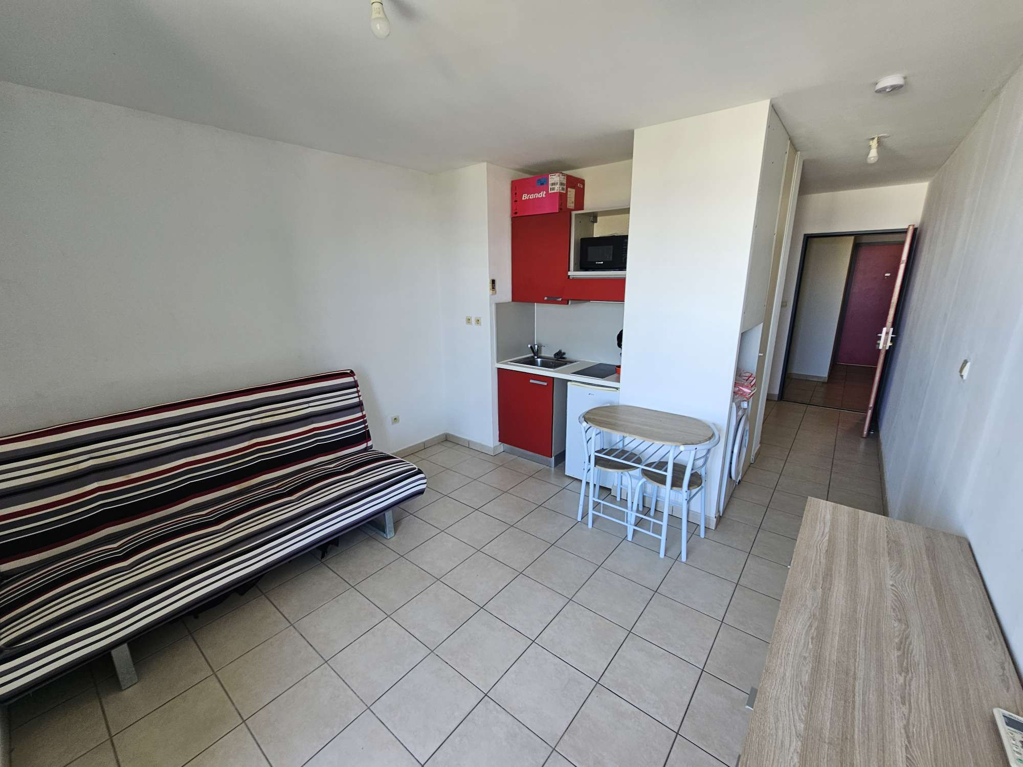 Cet studio meublé sommairement - équipement de base - , au R+3 de la résidence est composé d'une pièce à vivre climatisée donnant sur le balcon et sa vue magnifique sur la mer, un coin kitchenette équipée de plaque de cuisson hotte aspirante et placards, une grande salle d'eau avec WC.