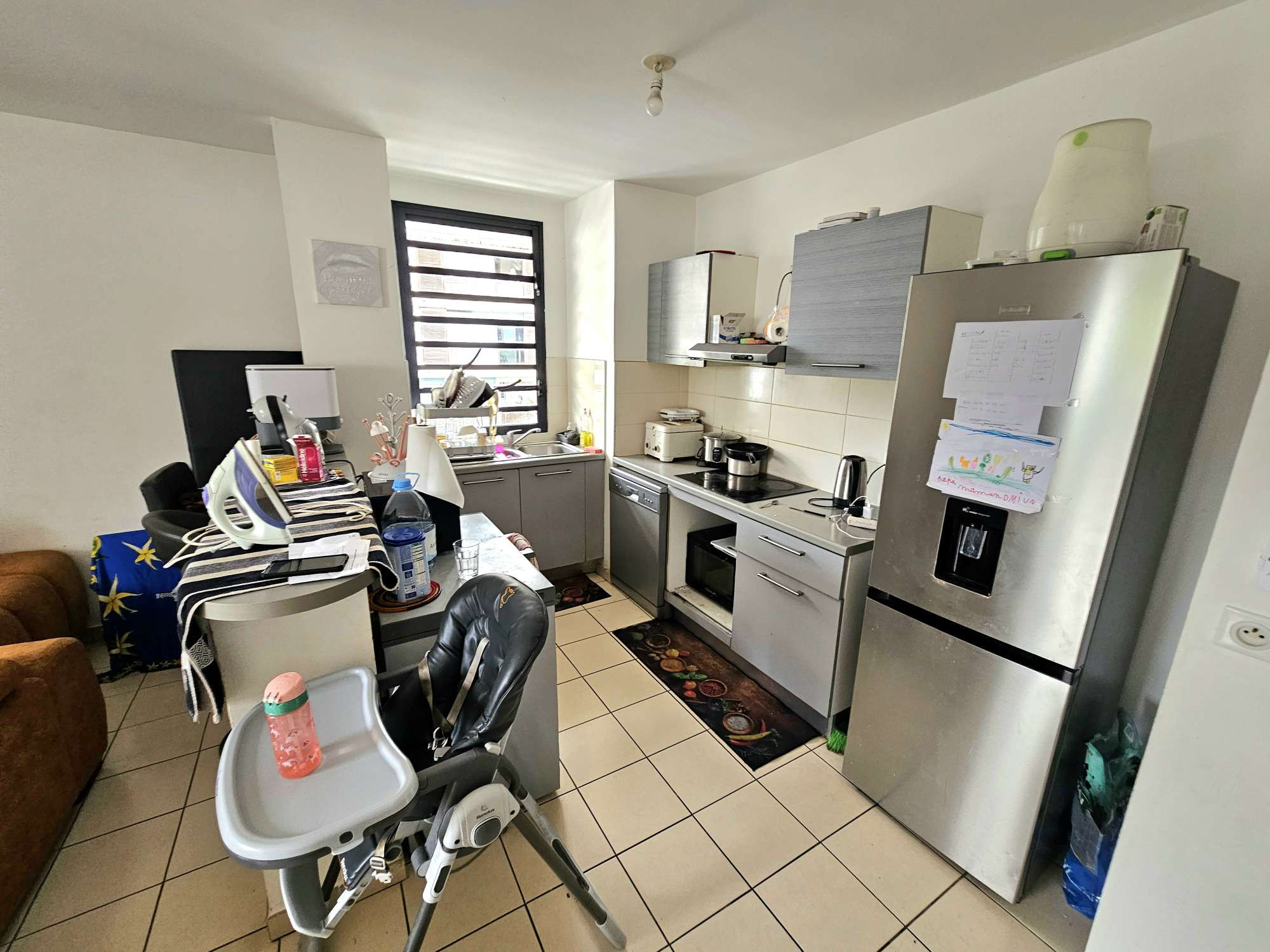 L'Immobilière de Bourbon vous propose en exclusivité cet appartement qui se compose de la façon suivante : Un grand séjour lumineux avec une cuisine ouverte équipée ainsi qu'une varangue d'environ 10 M² sans vis-à-vis direct et avec une jolie vue dégagée sur les montagnes. Dans la partie nuit, qui est distribué par un long couloir on retrouve : Une salle de bain avec aération naturelle via les jalousies, 2 chambres avec placard + ventilateur au plafond. Un grand WC séparé.