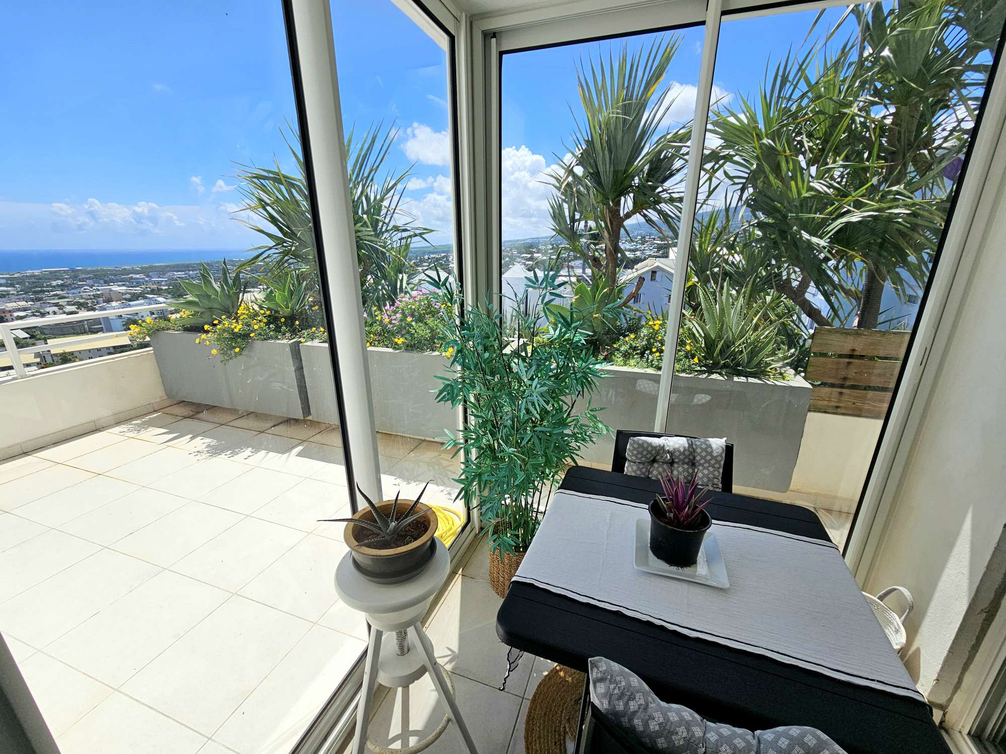 L'Immobilière de Bourbon vous propose, en rez-de-chaussée surélevé ( sensation de R+2) ce bel appartement de type T4, en parfait état d'une surface habitable de 78,51 M² + 20.13 M² de varangue fermée ainsi qu'une belle terrasse avec vue mer de 17,82 m².